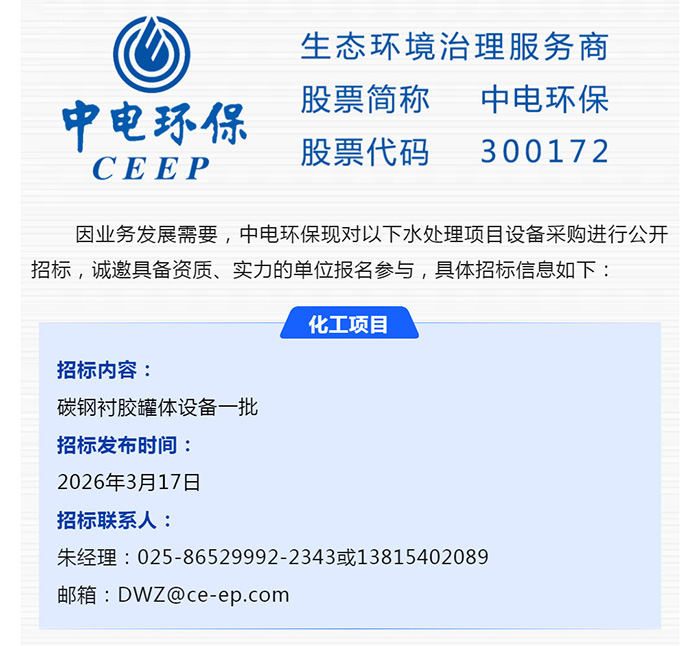 中電環(huán)保股份有限公司是南京市首家環(huán)保上市公司(股票簡稱:中電環(huán)保,股票代碼:300172),南京環(huán)保產(chǎn)業(yè)協(xié)會會長單位,國家級聯(lián)盟理事長單位,是生態(tài)環(huán)境治理服務商,主營(3+1):水務、固危廢、煙氣治理及產(chǎn)業(yè)創(chuàng)新平臺,包括:工業(yè)水處理、污水處理及水環(huán)境綜合治理;固危廢土壤、污泥餐廚垃圾處理;煙氣及VOCS治理;智慧環(huán)保;高端裝備等。
