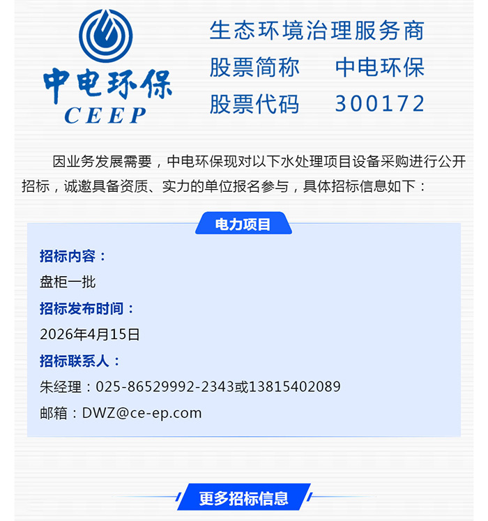中電環(huán)保股份有限公司是南京市首家環(huán)保上市公司(股票簡(jiǎn)稱:中電環(huán)保,股票代碼:300172),南京環(huán)保產(chǎn)業(yè)協(xié)會(huì)會(huì)長(zhǎng)單位,國(guó)家級(jí)聯(lián)盟理事長(zhǎng)單位,是生態(tài)環(huán)境治理服務(wù)商,主營(yíng)(3+1):水務(wù)、固危廢、煙氣治理及產(chǎn)業(yè)創(chuàng)新平臺(tái),包括:工業(yè)水處理、污水處理及水環(huán)境綜合治理;固危廢土壤、污泥餐廚垃圾處理;煙氣及VOCS治理;智慧環(huán)保;高端裝備等。